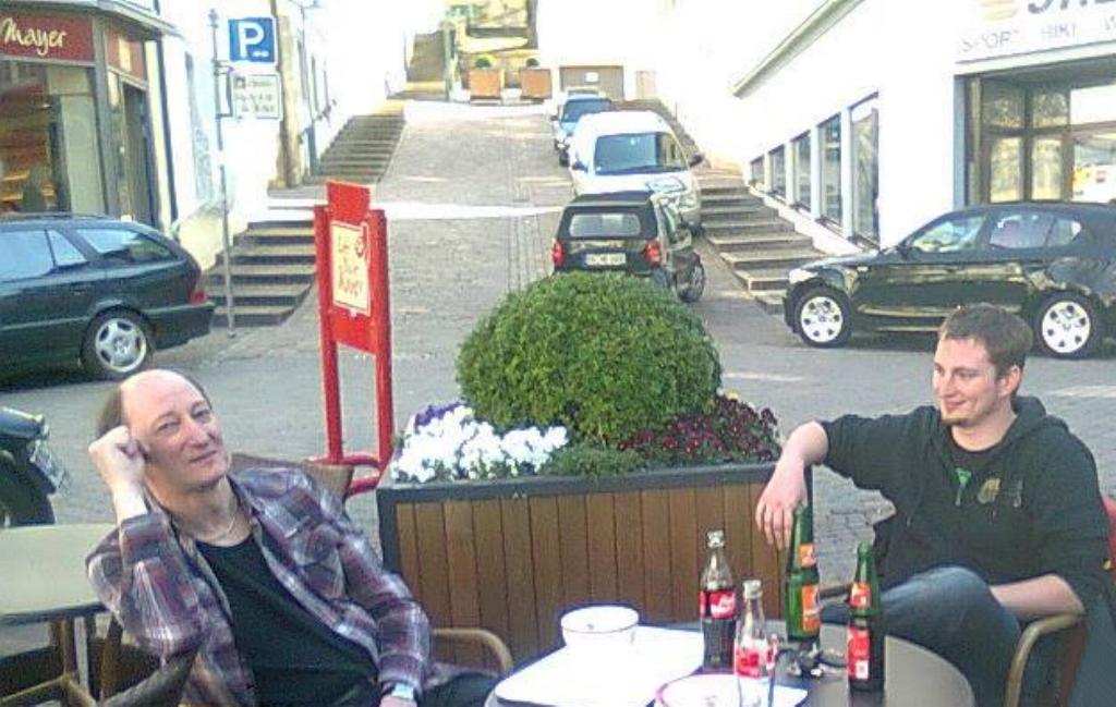 Tibor und Paddy auf dem Sulzer Marktplatz