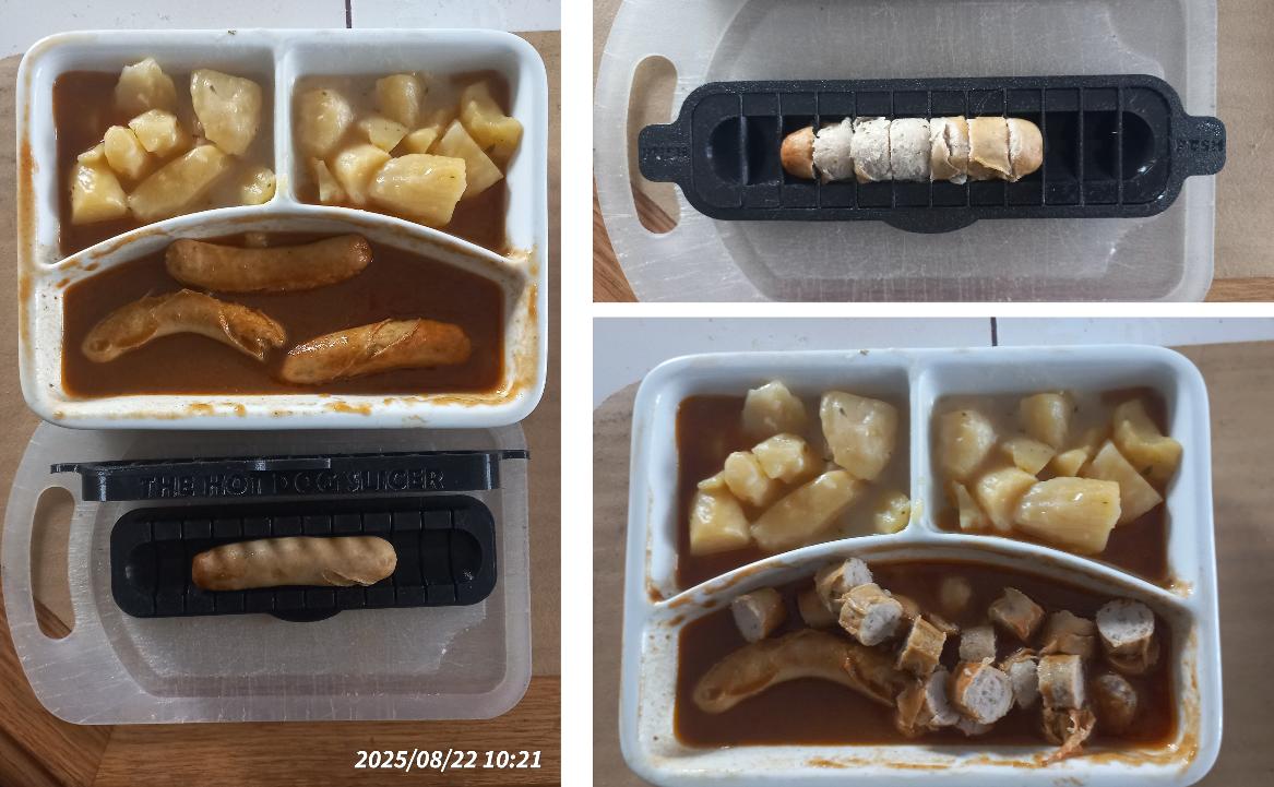 mit einem 'HOT DOG SLICER' aus dem 3D-Drucker.